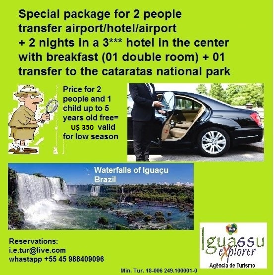 Seu receptivo exclusivo em serviço privado desde e para Aeroporto Cataratas (Foz do Iguaçu) ou desde e para Aeroporto Porto Iguazú (ARG). Consulte-nos receptivo em BUENOS AIRES, BARILOCHE, USHUAIA, MENDOZA, GELEIRA P.. MORENO. SAN MARTIN DE LOS ANDES. .
